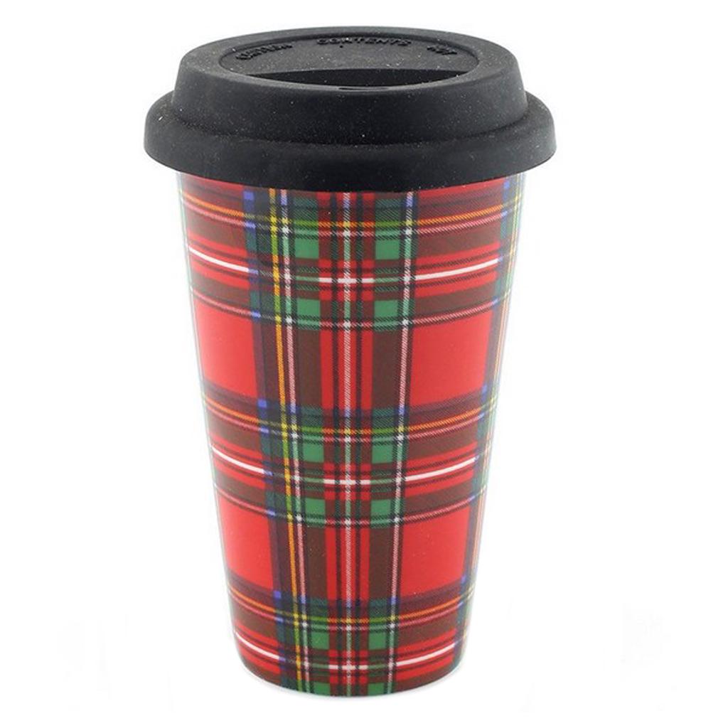 Les Trésors De Lily [Q2786] - Roter Reisebecher aus Porzellan „Scottish Tartan“ - 13,5 x 9 cm