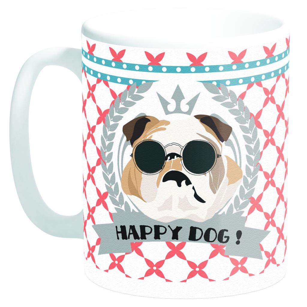 Les Trésors De Lily [Q3377] - Keramiktasse „Happy Dog!“ ' Bulldogge (hergestellt in Frankreich) – 9,5 x 8 cm