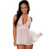 Sexy Nachthemd-Set für Damen, tiefes V-Neckholder-Dessous-Kleid, Spitzen-Tangas, durchsichtige exotische Unterwäsche-Robe für Damen