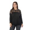 Fierte Damen Übergröße Bluse Rg6857 Rundhalsausschnitt Spitzendetail Langarm Strick Schwarz