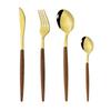 Geschirr-Set mit Holzgriff, 4-teilig, Goldbesteck, Besteck-Set, Kaffeelöffel, Abendessen, Messer, Fischgabel, Besteck, Geschirr-Set