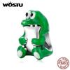 WOSTU 925 Sterling Silber Niedlicher grüner Krokodilanhänger mit großen Augen Passend für Original-Armband und Halskette DIY Schmuck