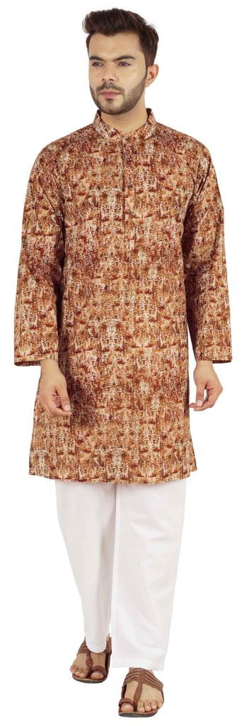 Atasi Indian Designer Kurta for Men Printed Long Sleeves Summer Ethnic Long