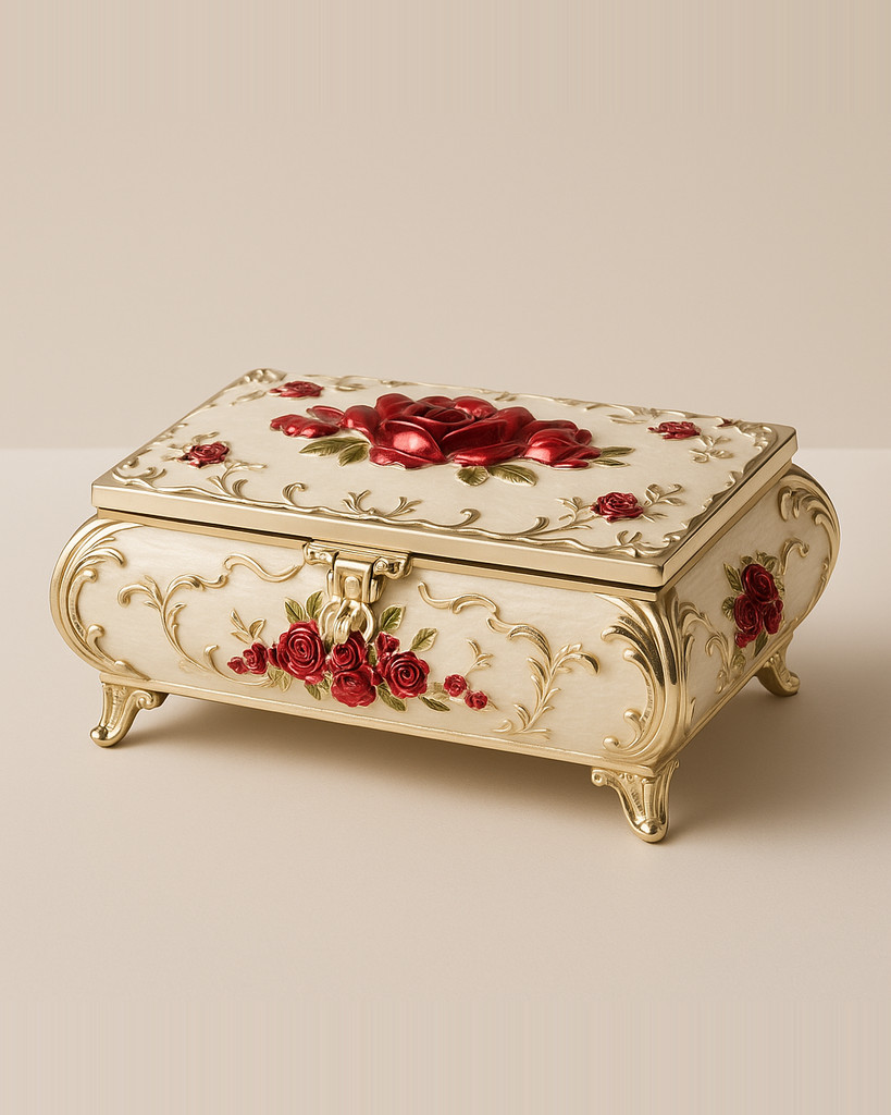 Vintage-Schmuckkästchen mit geschnitztem Dekor und Rose, aus Metall, mehrere Farben, emailliert, für Halskette, Anhänger, Ring, Geschenk, Aufbewahrungskiste