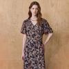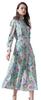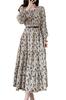 Bimba Moss Georgette Leaves|Madhabilata & Peony Floral Printed Womena s Long Sleeve Elastic Waist