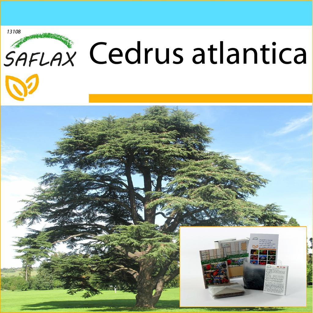 SAFLAX Geschenkset – Nordafrikanische Atlas-Zeder – 20 Samen – mit Geschenkbox, Karte, Etikett und Blumenerde – Cedrus atlantica