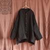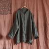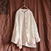 Johnature Frauen Vintage Leinen Taste Mäntel Stehen Einfarbig Lange Hülse Lose Mantel Frühling Chinesischen Stil Casual Kleidung