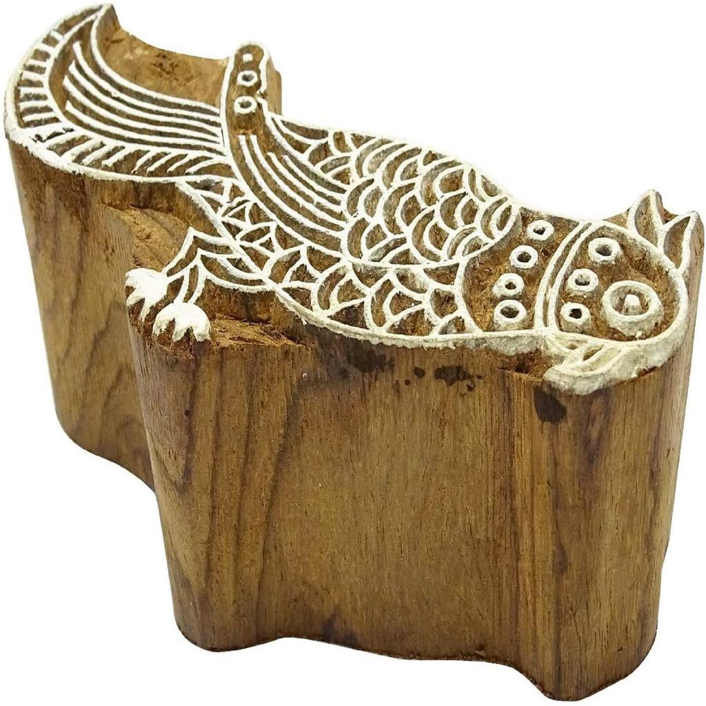 Indischer handgeschnitzter brauner Holztextilvogel-Stempelblock