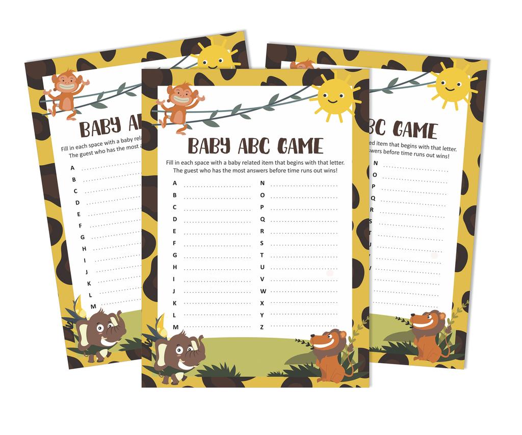 Inkdotpot 50 BabyA AlphabetA ABCA GameA Jungle Animals Baby Shower Game Gender Neutral Party