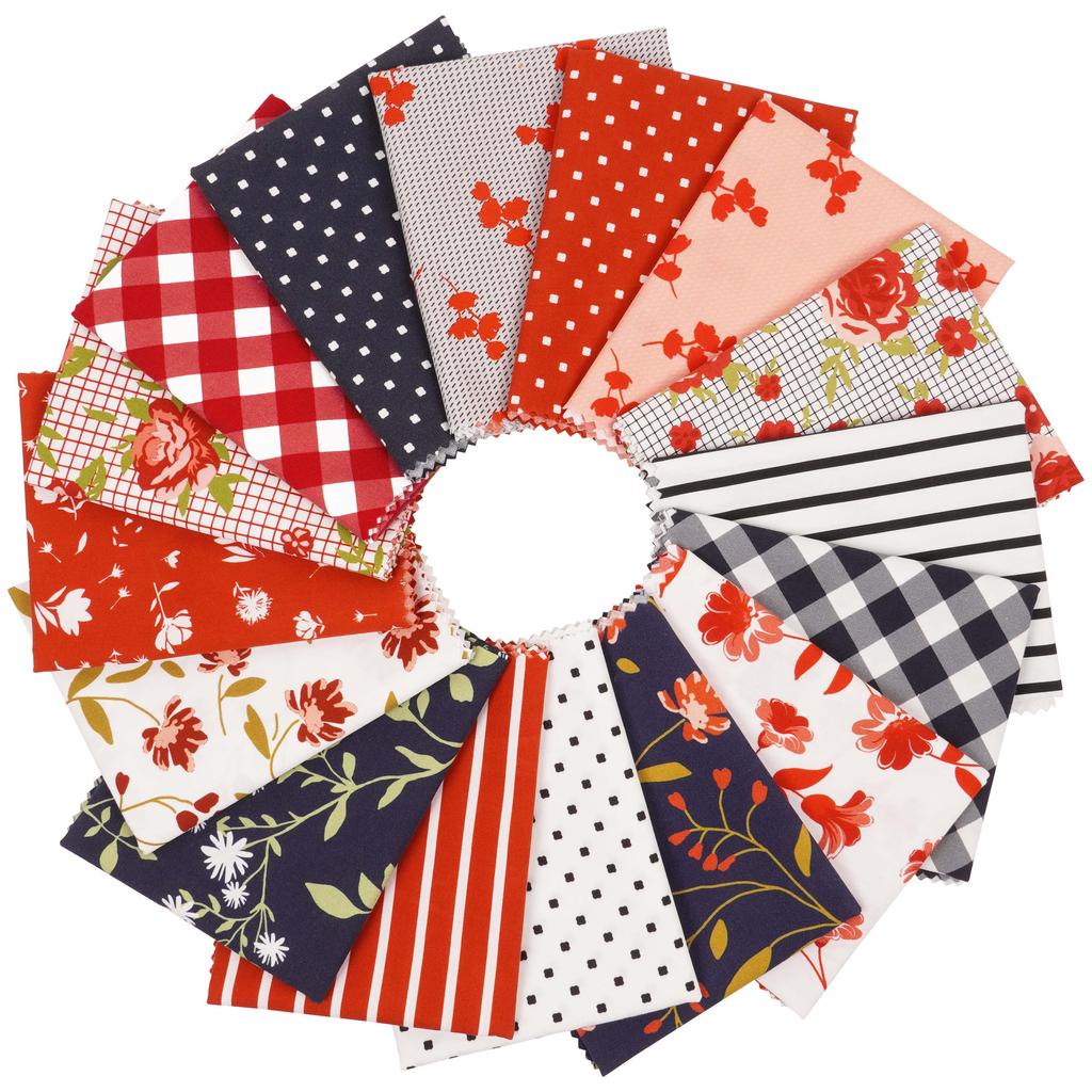 Soimoi 16-teiliges Fat Quarter Bundle - Blumenmuster mit geometrischem Druck 18"x 22" DIY Patchwork - 100 % Baumwolle, vorgeschnittener Quiltstoff, Rot-Blau &