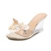 1098 Serie 8 cm Absatz Sandalen Kristall Transparent High Heels Strass Keil Flache Damenschuhe LFD