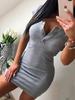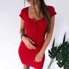 Sommer DressFall Frauen Sexy Casual Stricken Mantel Mini Kleider Damen Solide V-ausschnitt Brust Taste Kurzarm, Figurbetontes Kleid