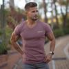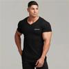 Muscleguys Herren-Fitness-Tops, Sommer, Bodybuilding, kurzärmelig, jugendliche Vitalität, bedruckt, V-Ausschnitt, gestricktes Hemd, modisch, lässig