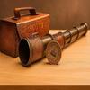 RII 12x Teleskop, J. Scott London Funktionelles Vintage Handgefertigtes zusammenklappbares Piraten-Fernglas mit bedruckter Ledertasche