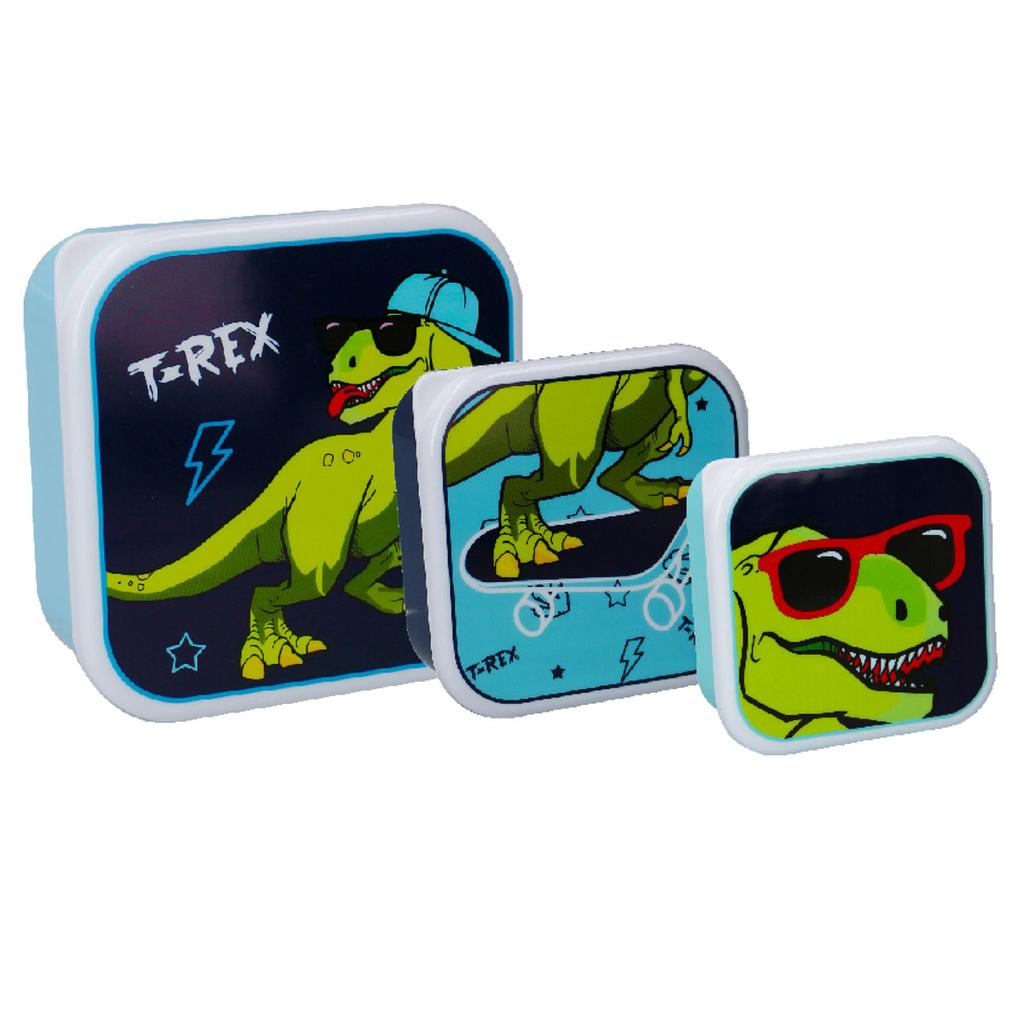 Les Trésors De Lily [A3073] - 3 Brotdosen zum Nesten 'Dinosaurier' blaugrün - 12x12x6 cm