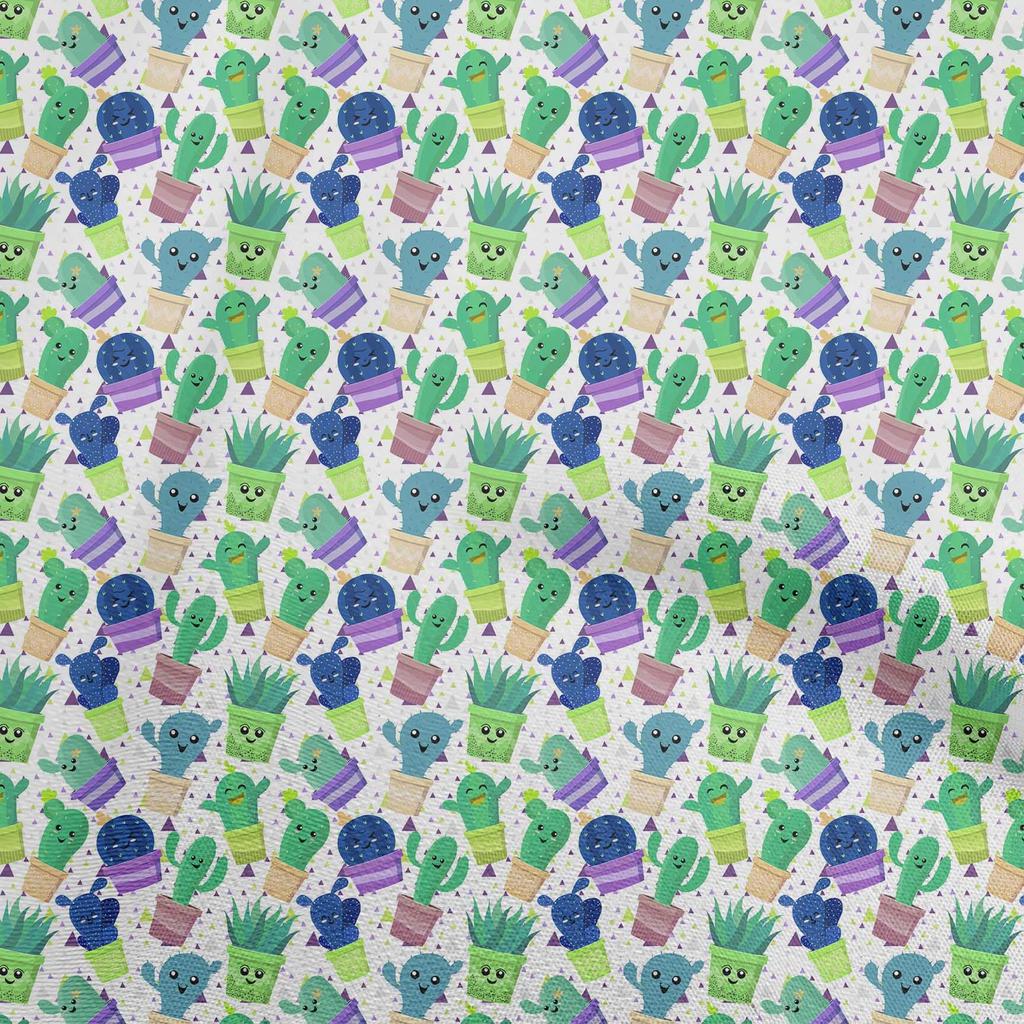 oneOone Baumwoll-Flex Staubiges Türkisgrünes Gewebe Asiatischer Kawaii Kaktus Mit Geometrischem Stoff Zum Nähen Gedruckter Bastelstoff Pro Meter 40 Zoll