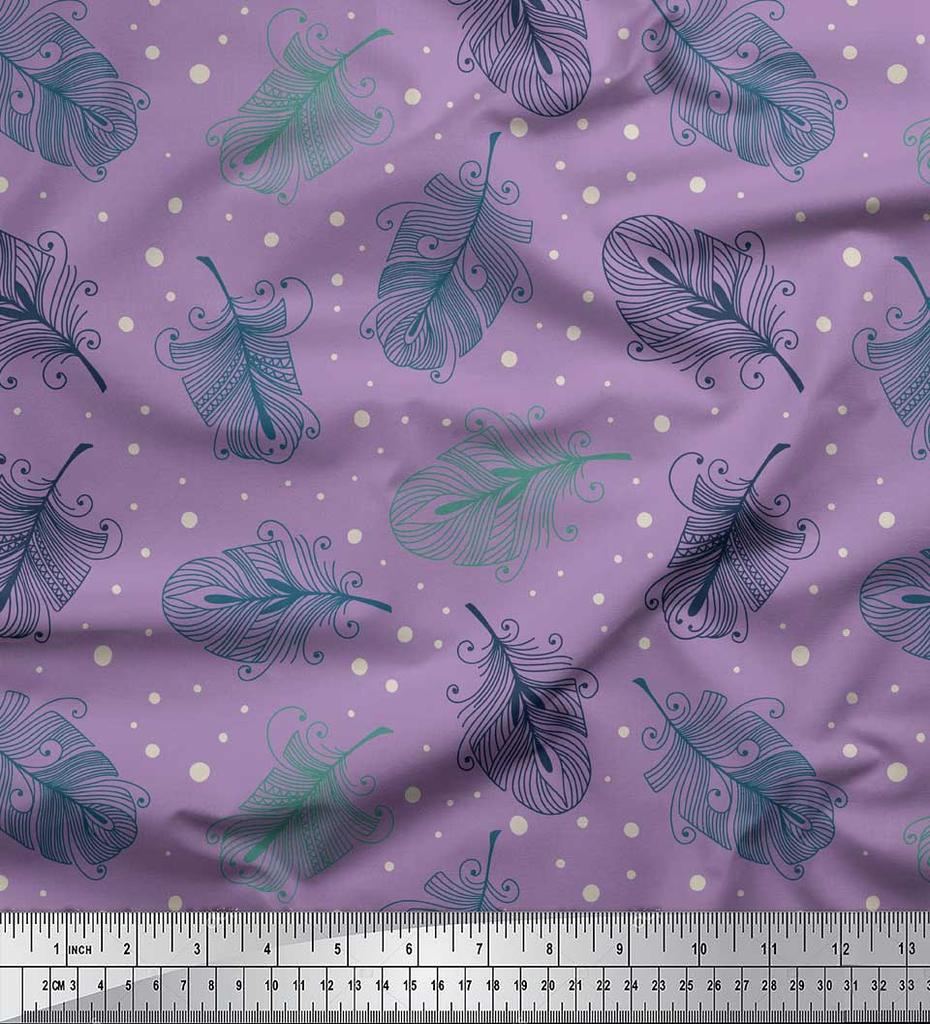 Soimoi Lila Japan Crepe Satin Stoff Künstlerische Feder Stoff Drucke Meterware 42 Zoll