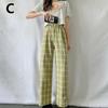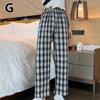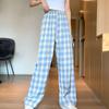 Damen Retro Plaid Loose Hose Leichte elastische Sommerhose mit hoher Taille und weitem Bein Freizeithose
