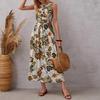 Sommer Baumwolle England Stil Blume Druck Ärmelloses Langes Kleid Für Frauen Apricot Casual High-taille Kleid Vestidos 24966