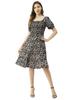 Moomaya Stufenkleid mit quadratischem Ausschnitt, knielanges, ausgestelltes, gesmoktes Sommerkleid