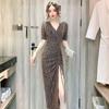 WTEMPO Abendkleider für Damen, sexy V-Ausschnitt, Hochzeitsempfangskleider, Hüfttaille, Kordelzugkleider, Träger, ausgehöhlte Partykleider