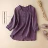 Literarisches Retro-Shirt-Oberteil aus 100 % Baumwolle, lockeres All-Match-Fünf-Punkt-Ärmel, dünn, atmungsaktiv