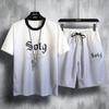 Harajuku Hip Hop Sommer Herren-Trainingsanzug, 2-teiliges Set, dünn, weich, atmungsaktiv, Jogginganzug, männlich, kurzärmeliges T-Shirt und Shorts-Sets