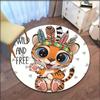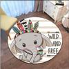 Cartoon Tier runder Teppich Teppich für Wohnzimmer Kinderzimmer Eule Elefant Löwe Bodenmatte Kinder Schlafzimmer