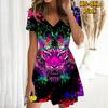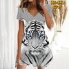 Sommermode Damen V-Ausschnitt Kurzarm The Gaze of a Fierce Tiger Bedrucktes Kleid Sex Kurzer Rock Kleider