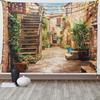Alter Hof, antikes Steinhaus, moderner Retro-Wandbehang, Wohnzimmer, Schlafsaal, Dekoration, Retro-Straßenlandschaft, Wandteppich