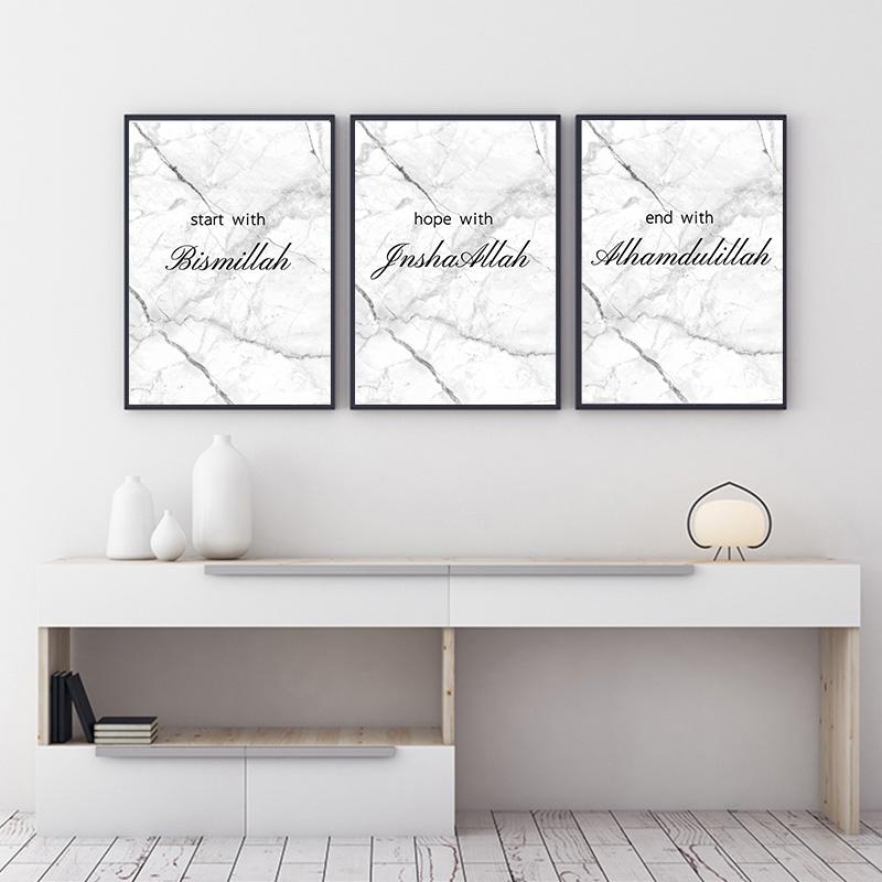 Islamisches Wandgemälde aus Marmor, Wandkunst, Poster mit arabischen Zitaten, Druck, moderne muslimische Leinwandmalerei, Wandbilder für Wohnzimmer, Heimdekoration