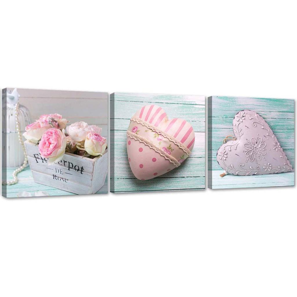 3er Bilderset Leinwandbild Heart of Love Pink