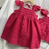 Kinder Mädchen Kleid mit fliegenden Ärmeln, quadratischem Ausschnitt auf der Rückseite, mit Schnürung, Prinzessinnenkleid