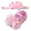 Baby Mädchen Net Garn Schleife Prinzessin Schuhe Kleinkind Weiche Sohle Wanderschuhe Stirnband Set