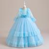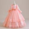 Flauschige Mädchen-Partykleider, weiße Spitze, Schleife, Bridemaid, Hochzeit, Prinzessin, Kinderkleid für Mädchen, halbe Ärmel, Geburtstagskleid, Kostüm