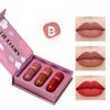 3-Farben-Kapsel-Lipgloss-Samt-Matt-Samt-Antihaftbecher, wasserfest, wischfest, lichtecht, flüssiges Lippenstift-Set