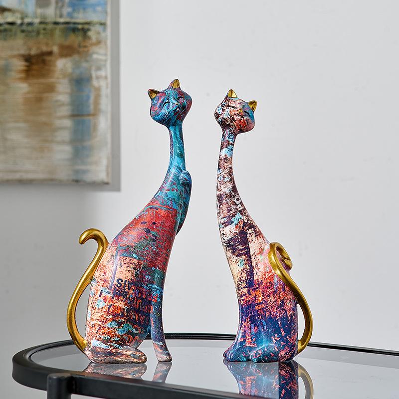 Nordic Kunst Ölgemälde Katze Dekoration Harz Abstrakte Ornamente Figuren Schlafzimmer Desktop Veranda Katze Skulptur Wohnkultur Geschenk