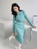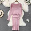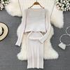 Lazy Style Langarm-Rundhalsausschnitt, locker gestricktes Smock-Top + schlankmachendes V-Ausschnitt-Westenkleid, zweiteiliges Set