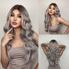 ALAN EATON Blonde lange lockige synthetische Perücken mit Pony Ombre Blonde Highlight Wave Perücke natürliche Frauen tägliches Haar hohe Temperatur