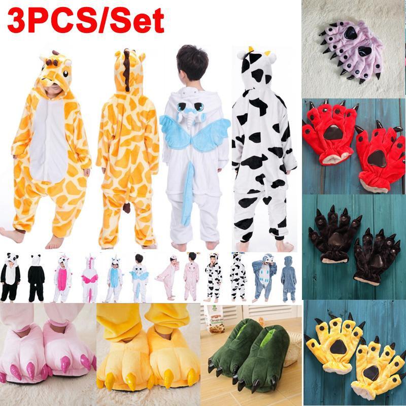 3 teile/satz Kinder Kinder Pyjamas Kigurumi Cosplay Kostüm Tier Nachtwäsche Anzug + Schuhe + Handschuhe