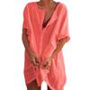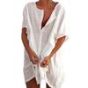 Große Größe 8XL Reine Farbe Hemd Frauen Tiefe V Kurzarm Bluse Sommer Freizeit Lose T-shirt Kleid