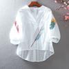 Summer Loose Cotton Blouse Lace V-neck Embroidered Balloon Sleeve Shirt Women's Top