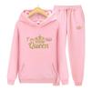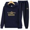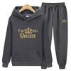 Herren-Sets „I'm His Queen“-Aufdruck, Sweatshirt, Sportanzug, 2-teiliges Set, Unisex-Kapuzenpullover, Fleece-Sweatshirt + Hosenanzug, Kapuzenpullover, Sportbekleidung
