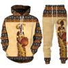 Frühling Herbst Sweatshirt Set 3D Druck Afrikanischen Ethnischen Stil männer Hoodie + Hosen Zwei Stück Lose Langarm Trainingsanzug kleidung