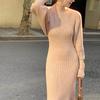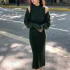 Damen Winter 2er-Pack lange, figurbetonte Pullover-Kleider mit Stehkragen und Strickjacke