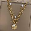 Pullover-Kette, doppellagige Halskette, einfache Persönlichkeits-Halskette, geometrischer Pailletten-Anhänger, Stern-Mond-Pullover-Kette