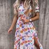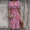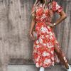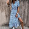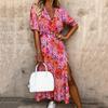 Frauen Sommer Urlaub Casual Floral Gedruckt Kurzarm V-ausschnitt Split Langes Kleid