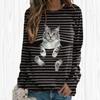 Frauen Herbst Tops Lose Katze Nette Katze Drucken Kausalen Langarm T-shirt Top Bluse