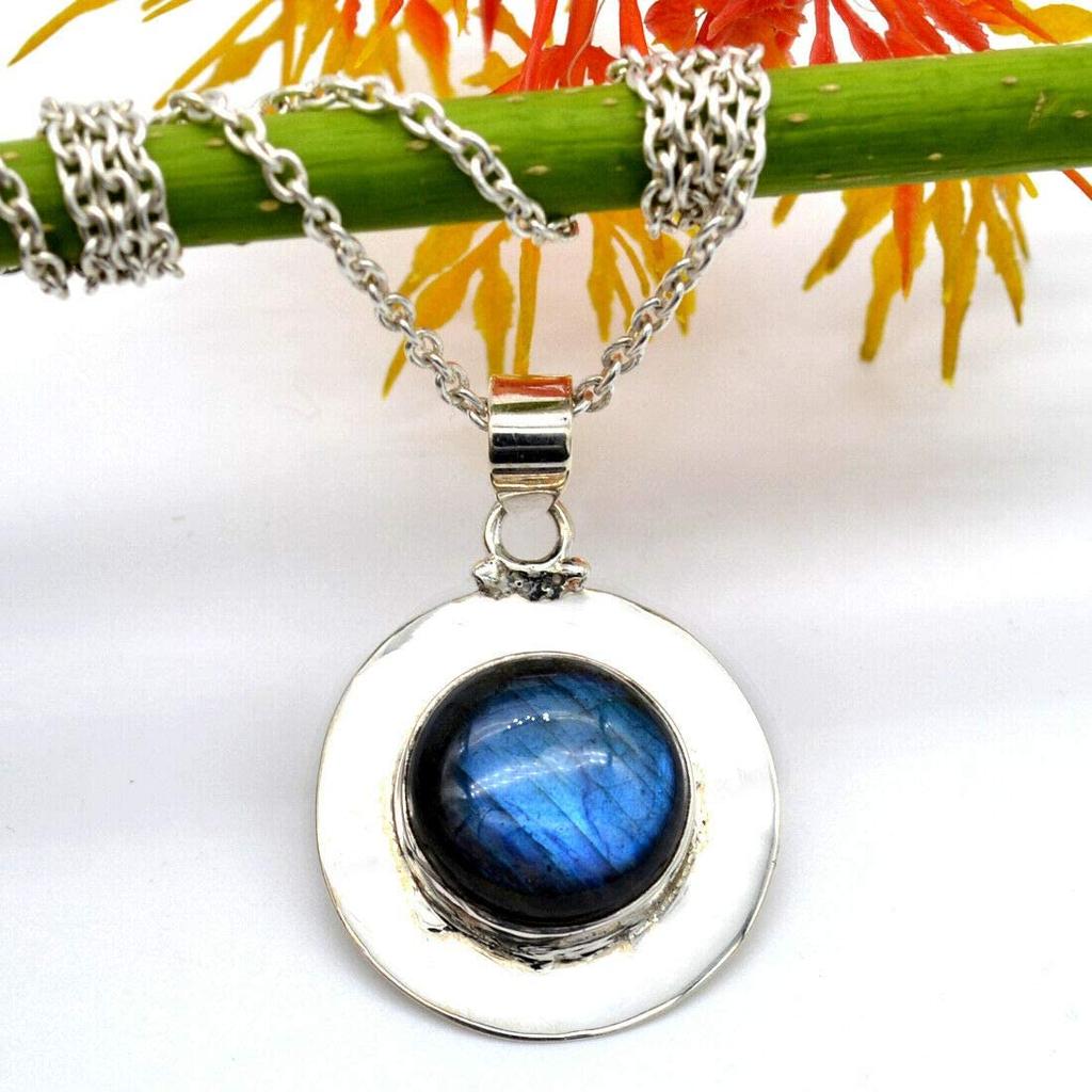 Labradorit-Edelstein-Halskette, Damen-Halskette, Geschenk für Sie, Boho-Halskette, Hochzeitsgeschenk, Designer-Halskette, Jubiläumsgeschenk, Silber-Charm-Schmuck