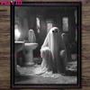 Dunkler romantischer Geist in der Badewanne, Retro-Wandkunst, Ölgemälde, Horror und Horror, schöne Blase-Badewanne, Geisterkunst-Poster